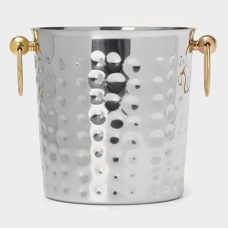 Ведро для льда «Чеканный», 5.2 л, 25×20×20.5 см, нержавеющая сталь, золотые ручки