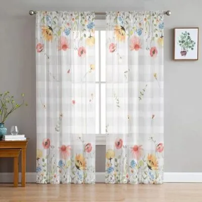Главная » Все для дома Весенние акварельные цветочные серые клетчатые занавески для спальни, прозрачные прозрачные шторы, праздничное украшение, оконная вуаль, тюлевая занавеска 135W x 114H(cm) Просмотров 9 A Family Of Home Textiles