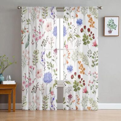 Главная » Все для дома Весенние акварельные цветы листья прозрачные шторы для украшения гостиной оконные шторы для кухни тюль вуаль органза шторы W135 x H115cm x1Grommet Top Просмотров 1 Yiran Furniture