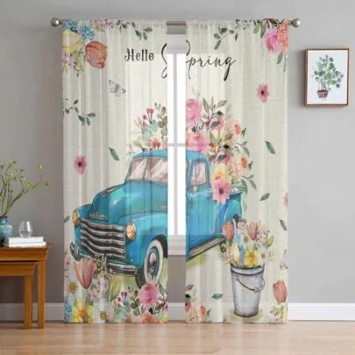 Главная » Все для дома Весенний цветок грузовик прозрачные оконные шторы для гостиной, кухни, детской спальни, вуаль, подвесная занавеска 135W x 114H(cm) Просмотров 19 Yifulin