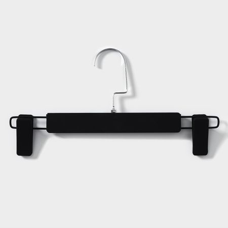 Вешалка для брюк и юбок с зажимами, 30×16.5 см, покрытие soft-touch, черная. Тщательно выглаженные брюки и юбка — знак, сигнализирующий об аккуратности, опрятности и чувстве стиля их владельца. В свою очередь, измятая одежда производит обратный эффект: окружающие воспринимают это как проявление внутренней небрежности человека. Если второй вариант вам не по душе, то вешалка для юбок и брюк — это именно то, что вам нужно! Вы забудете о неприятных ситуациях, когда выглаженная с вечера одежда падала с вешалки и утром представала в совершенно неприятном виде. Зажимы надежно зафиксируют брюки, юбки и джинсы. Заказывайте вешалку на наше сайте и будьте уверены в своем образе каждый день!