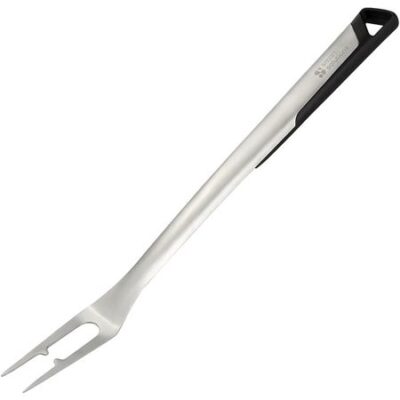 Вилка для мяса Smart Solutions Smart Grill SS0000274 – удобный, многофункциональный инструмент, который сделает процесс приготовления блюд на открытом огне более простым и безопасным. Вы можете использовать её для переворачивая или удерживания стейков на гриле, проверки степени готовности мяса и подачи его на стол. Особенности Рабочая часть из нержавеющей стали AISI 430 Рабочая часть прибора изготовлена из нержавеющей стали AISI 430 жаропрочного класса, способной выдерживать воздействие высоких температур – до 850 °C. Небольшой зазор между зубцами делает работу инструмента более эффективной Безопасность в использовании Оптимальная длина и толщина металла исключает возможность обжечься и позволяет проводить все необходимые манипуляции с продуктом. Возможно компактное хранение на подвесных держателях. Вилку можно использовать на открытом огне, избегая его прямого воздействия на ручку. Можно мыть в посудомоечной машине