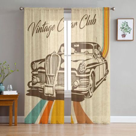Винтажный автомобиль на ретро-прозрачных шторах для гостиной, прозрачный тюль, оконные шторы для спальни, кухни, домашнего декора, вуалевые шторы 135W x 114H(cm)