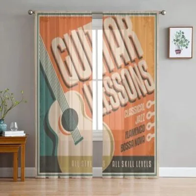 Винтажный дизайн плаката для уроков игры на гитаре, прозрачные шторы для гостиной, тюлевая занавеска на окно, спальня, кухня, вуаль, шторы 135W x 114H(cm)