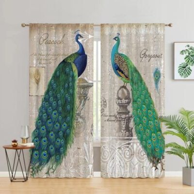 Винтажный павлин с цветами и бабочками, высокая затемняющая штора для спальни, гостиной, окно, плотная затемняющая драпировка, разноцветный павлин W55 X H120cm X 2Grommet Top