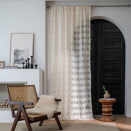 Вязаные вручную кружевные шторы — светофильтрующие занавески в фермерском стиле для гостиной/спальни/балкона | Бохо-шторы для эркерных окон с винтажным шармом 1.5×1.6MGrommets
