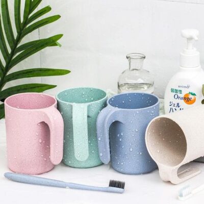 Vogue Fashion Simple Bathroom Wash Cup Wheat Straw Men Women Multifunctional Cawan Cuci Mulut Kitchen Cawan Minum Mouthwash Cup with Handles Fashion зелёный