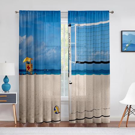 Волейбольные мячи Игры Спорт Красочные тюлевые шторы для гостиной спальни Современные шифоновые прозрачные вуалевые кухонные оконные шторы 1 PCS W100XH250cm&Rod Pocket