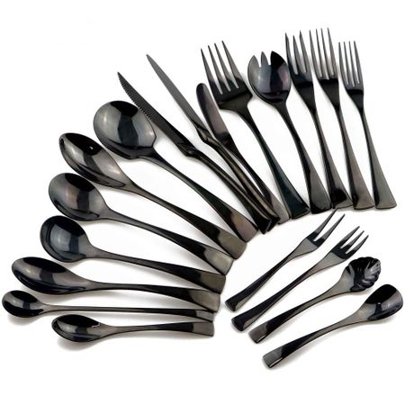 Все стили, цельный черный набор столовых приборов, наборы столовых приборов из нержавеющей стали 18/10, западная еда, нож для масла, вилка, ложка, столовая посуда Cake Fork