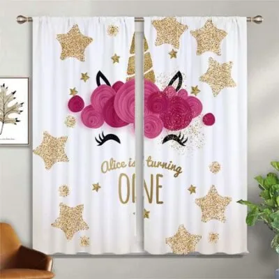 Высокие шторы с принтом единорогов с высокой степенью затемнения, детские подарки, шторы для изоляции спальни, гостиной, кухни,, домашнее украшение 2 шт. W100xH130(CM) folioGrommet Top
