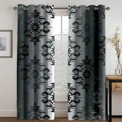 Высококачественная роскошная брендовая занавеска с черным узором и 3D принтом, плотная затеняющая занавеска для спальни, гостиной, окна отеля, 2 шт., бесплатные крючки W50H100(CM)x2Grommet Top