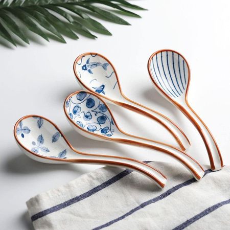 Взрослые Керамическая японская посуда для столовых приборов Кухонная утварь Столовые приборы Суповые ложки D жёлтый