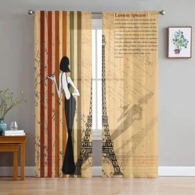 Woman Cosmetics Nail Polish Tulle Curtains for Living Room Decoration Modern Chiffon Sheer Voile Kitchen Bedroom Window Curtain 1 PCS W100XH250cmGrommet Top