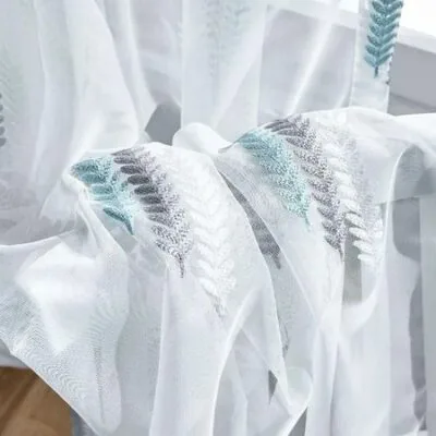 WTEMPO 2 шт. вышитые оконные шторы с скандинавской отделкой, эркерные перегородки для спален, гостиных, защита от комаров, простые современные марлевые шторы 100*270cm*2pcs синий