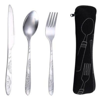 Yousheng многоразовый дорожный набор столовых приборов с сумкой портативный набор столовых приборов для кемпинга пикников офиса легкая ложка вилка резак посуда чёрный