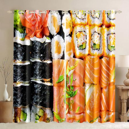 Забавные шторы с принтом суши в японском стиле для детской гостиной спальни кухни, занавеска на окно справа, двустворчатые открытые шторы, 2 панели W60H60(CM)x2PCSGrommet Top