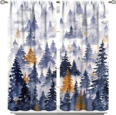 Занавеска Country Forest Wild Animal Bear Deer Fox Wolf Занавеска Country Printed Semi-blackout Занавеска для спальни, гостиной, 2 панели 100W130H(CM)40x51inGrommet Top