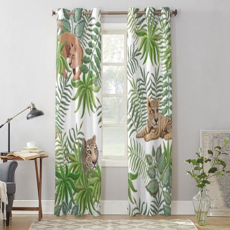 Занавеска на окно с изображением животных льва и тигра для детской комнаты, домашние жалюзи, шторы для гостиной, спальни, оконные шторы 135W x 60H(cm) x1