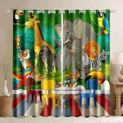 Занавеска на окно с животными в стиле сафари, занавески с принтом джунглей и леса, домашний декор, драпировка для маленьких детей, спальня, гостиная W50xH130(CM)x2PCS-Rod pocket