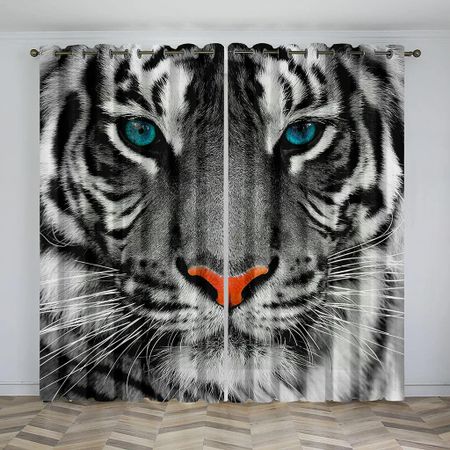 Занавеска с 3D цифровой печатью для кухни, белый тигр, дикое животное, леопардовый узор, оконные шторы для гостиной, 2 панели, новая мода W50xH130(CM)x2pcs&HOOK