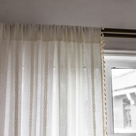 Занавеска с готовой полой хлопковой льняной кисточкой для гостиной, спальни, кабинета, с кисточкой, серая декоративная занавеска для эркера W60*H90cm белый