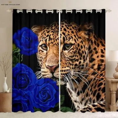 Занавеска с изображением розового цветка и тигра, напечатанная на 3D-принтере, занавеска в стиле ретро, украшение окна, карман для штанги, украшение для дома, 2 шт. W50X130H(CM)X2PCSRod pocket