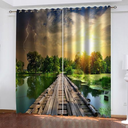 Затемняющие шторы на заказ, 3D печатный деревянный мост, оконная занавеска для спальни, гостиной, балкона, бесплатная доставка W70xH160cmx2&Grommet Top
