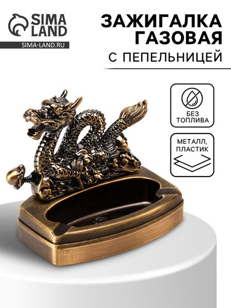 Зажигалка настольная с пепельницей, газовая «Дракон» 11.5×6×10 см