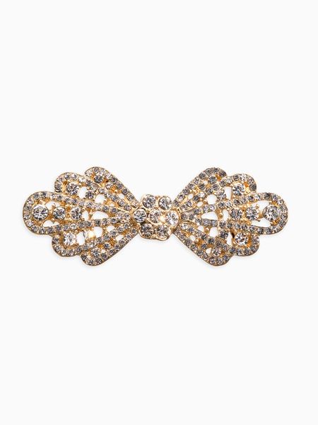 Сделайте акцент на своей индивидуальности с элегантным зажимом для кардигана в виде белого бантика, погружённого в роскошь золотистого оформления. Миниатюрный аксессуар длиной всего 6,5 см привлекает внимание утончённым рисунком и небольшим количеством декоративных страз, обеспечивающих игру света и дополнительный объём.Особенности изделия:Контрастное сочетание золотого и белого оттенков обеспечивает глубокое и интересное взаимодействие цветов;Регулируемая система фиксации позволяет крепить зажим на разные типы ткани без риска повредить их целостность;Эксклюзивность дизайна поддерживается применением редких техник обработки металлов и камня.Рекомендуемый контингент покупателей:Женщины, ценящие уникальность и независимость в выборе аксессуаров;Студенты и преподаватели гуманитарных наук, заботящиеся о своём имидже и личном комфорте;Представители творческих профессий, регулярно сталкивающиеся с необходимостью выделяться среди толпы.Поднимите настроение себе и окружающим, показывая своё умение находить правильное соотношение формы и содержания в деталях одежды.