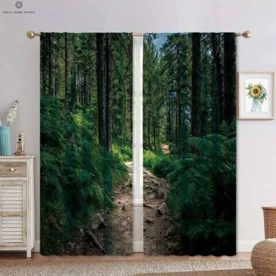 Зеленый лес Осенний лес 3D-печать Шторы Эффект Тиндаля Спальня Гостиная Кухня Декоративные Шторы 2 шт. W50xH130(CM)x2PCSGrommet Top