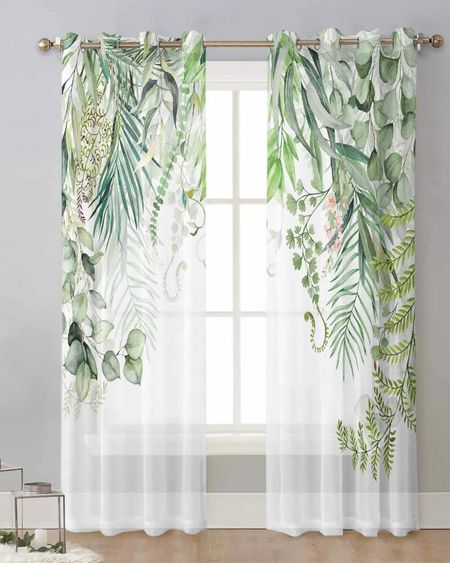 Главная » Все для дома Зеленый лист эвкалипта тюль украшение гостиной прозрачные прозрачные шторы спальня кухня вуаль шифоновые шторы W50X130H(cm)x2PcsGrommet Top Просмотров 1 Yiran Furniture