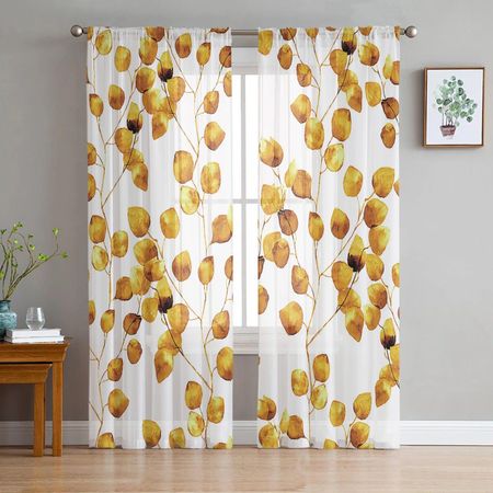 Главная » Все для дома Желтые акварельные листовые оконные тюлевые шторы для гостиной, кухни, рождественского домашнего декора, прозрачные шторы из вуали 135W x 114H(cm) Просмотров 7 Yifulin