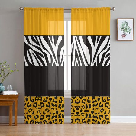 Желтый леопардовый зебра в полоску Тюлевые оконные шторы для гостиной, пряжа из органзы, прозрачная вуаль, занавеска для спальни, кухни, домашний декор, драпировка W135 x H115cm x1