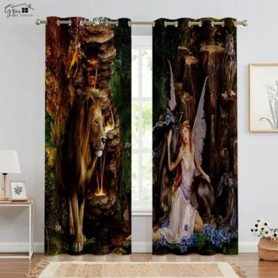 Животные 3D Печатные Шторы Лев Красавица Медведь Тигр Жираф Зебра Слон Домашнее Животное Собака Кошка Дети Декоративные Шторы 2 ШТ W50xH130(CM)x2PCSRod pocket