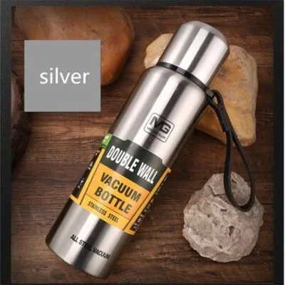 Зимние термосы большой емкости термокружка портативный веревочный термос бутылка для воды с заварником для чая 500ml серебряный