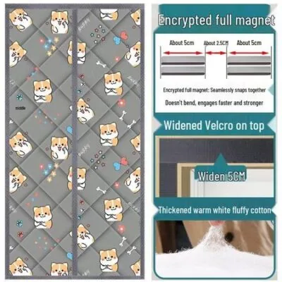 Зимняя утепленная магнитная хлопковая дверная штора — Толстая, Ветрозащитная, Звукоизолирующая, Без пробивания отверстий, Самоклеящаяся. 90x205cm