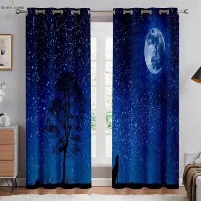 Звезда Волк Животное 3D Печать Шторы Спальня Гостиная Кабинет Кухня Затемнение Теплоизоляция Шторы Можно Настроить 2 ШТ. W100xH130(CM) folioGrommet Top
