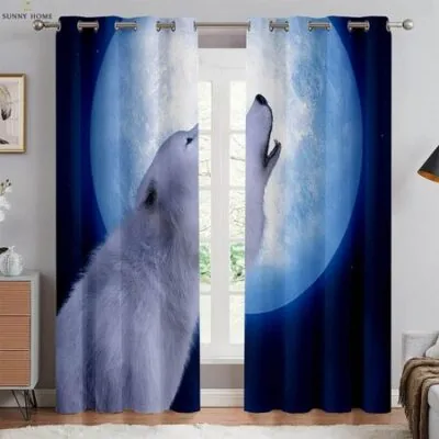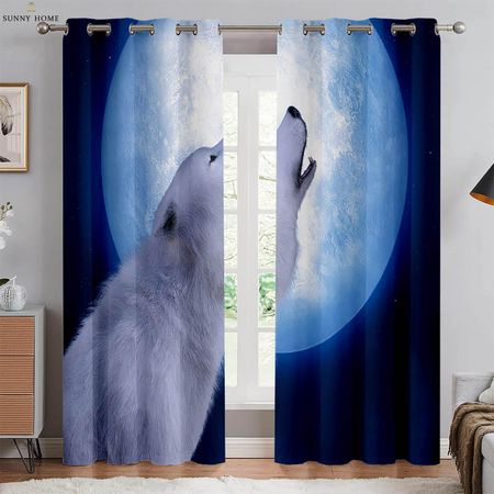 Звезда Волк Животное 3D Печать Шторы Спальня Гостиная Кабинет Кухня Затемнение Теплоизоляция Шторы Можно Настроить 2 ШТ. W100xH130(CM) folioGrommet Top