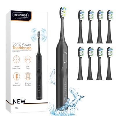 Электрическая звуковая зубная щетка Mornwell T38, зарядка через USB, водонепроницаемая ультразвуковая автоматическая зубная щетка для взрослых, 8 сменных насадок для щеток
