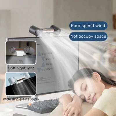 Креативный компьютерный монтируемый на экран вентилятор с зажимом USB Перезаряжаемый 1200 мАч двухмоторный Электрический вентилятор с воздушным охлаждением с светодиодный лампой