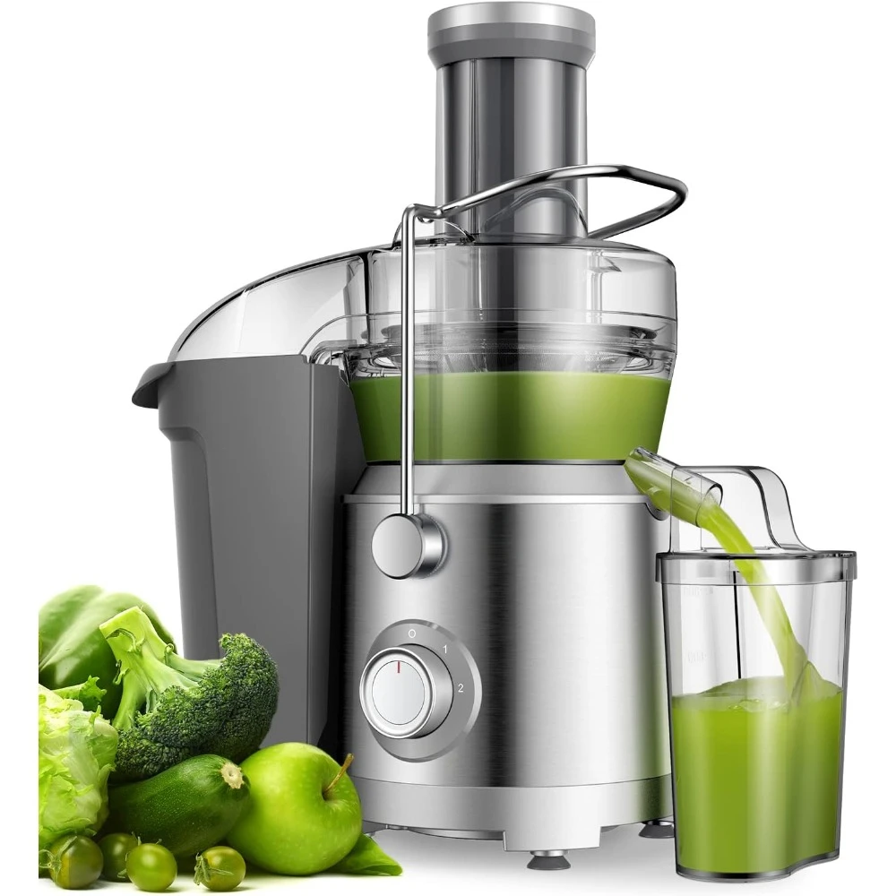 Главная » Бытовая техника Соковыжималки мощностью 1300 Вт с большим кормовым желобом 3,2 дюйма, Центробежная Соковыжималка с улучшенным титановым режущим диском Просмотров 12
