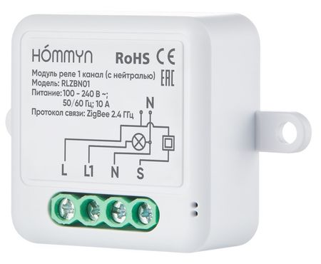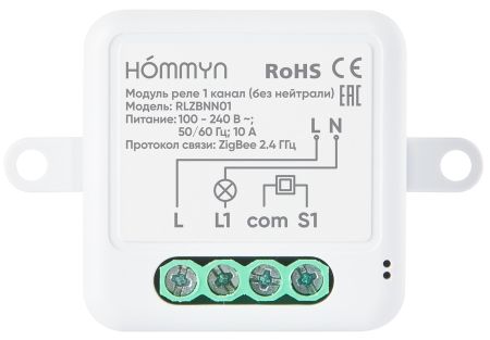 Устройство Hommyn (Хоммайн) Модуль реле 1 канал (без нейтрали) оснащено специальным реле для монтажа в стандартные подрозетники, благодаря чему становится