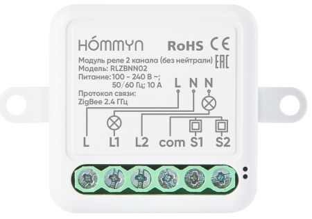 Основным достоинством Hommyn (Хоммайн) Модуль реле 2 канала (без нейтрали) является способность функционировать без необходимости подключения к нейтральному