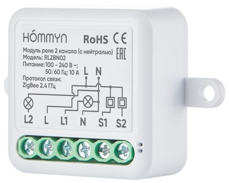 Двухканальное умное реле Hommyn (Хоммайн) Модуль реле 2 канала (с нейтралью) это идеальное решение для тех, кто хочет сделать свой дом более умным , не