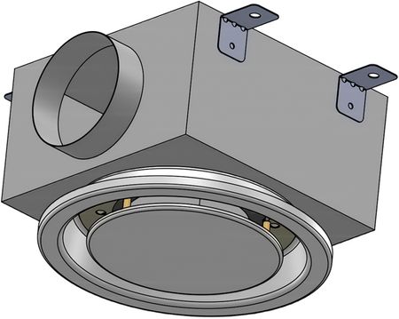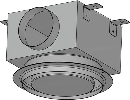 Круглый диффузор Системэйр NTP 125-200/20-RAL 9016М-PB поставляется в сборе с камерой статического давления. Изделие устанавливается в натяжной потолок