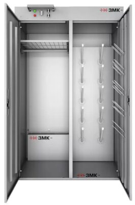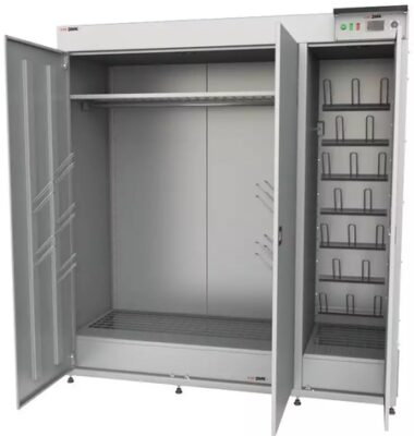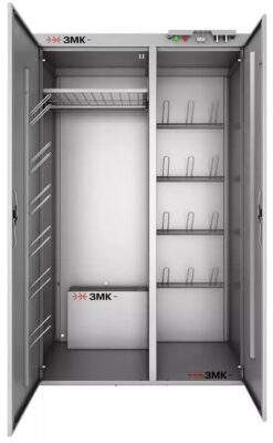 ЗМК РШС-5Э-120 это сушильный шкаф, в котором можно одновременно просушивать комплекты одежды, обувь и аксессуары (перчатки, шапки, шарфы).