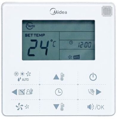 Проводной пульт Midea (Мидея) KJR-29B/BK-E отлично подходит для дистанционного управления кондиционером, фанкойлом. Модель оснащена приемником сигнала.