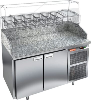 Hicold (Хайколд) PZ2-11GN (1/6) КАМЕНЬ представляет собой холодильный стол для пиццы, имеющий гранитную столешницу толщиной 50 мм. Внутреннее пространство