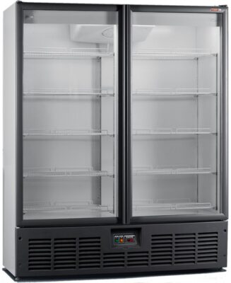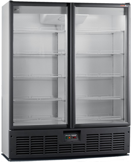 АРИАДА R1400MS на пропане это среднетемпературный холодильный шкаф с двумя распашными дверцами со стеклопакетами. Холодильный агрегат в нем расположен снизу. Также в нижней части находится электронный блок управления. В общей сложности в шкафу размещается 10 полок. Тип охлаждения динамический.