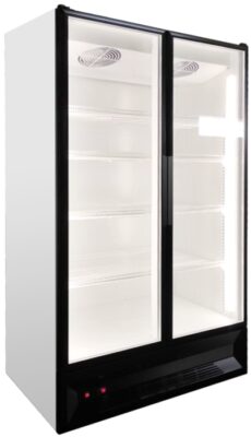 Velescom (Велеском) S10 S это среднетемпературный холодильный шкаф с двумя стеклянными распашными дверцами, четырьмя выдвижными полками и яркой светодиодной подсветкой. Холодильный агрегат в нем расположен снизу, панель управления вынесена на корпус. Для регулировки температуры в модели предусмотрен термоконтроллер.